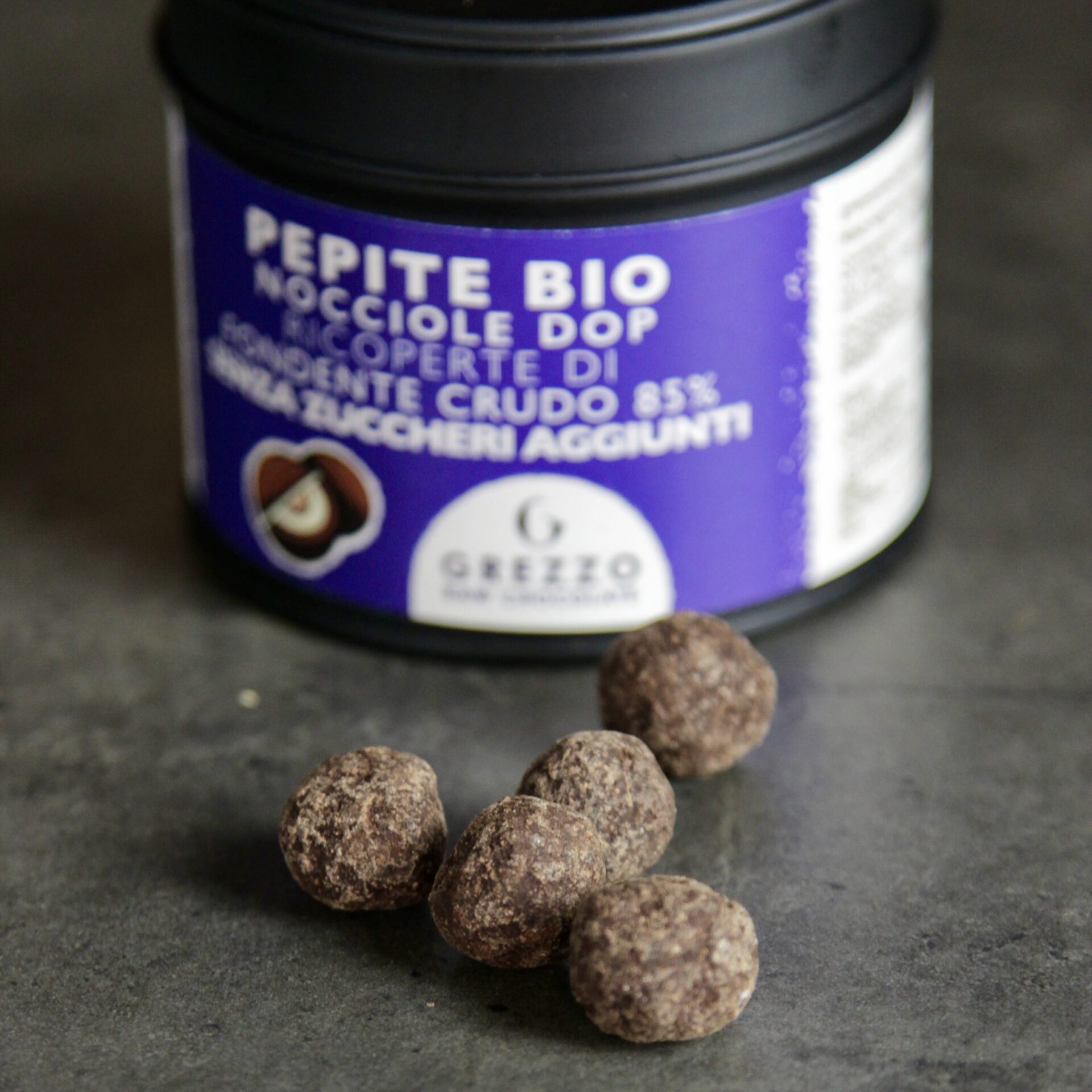 PEPITE BIO* NOCCIOLE DOP RICOPERTE DA FONDENTE CRUDO 85% SENZA ZUCCHERI AGGIUNTI – 150g
