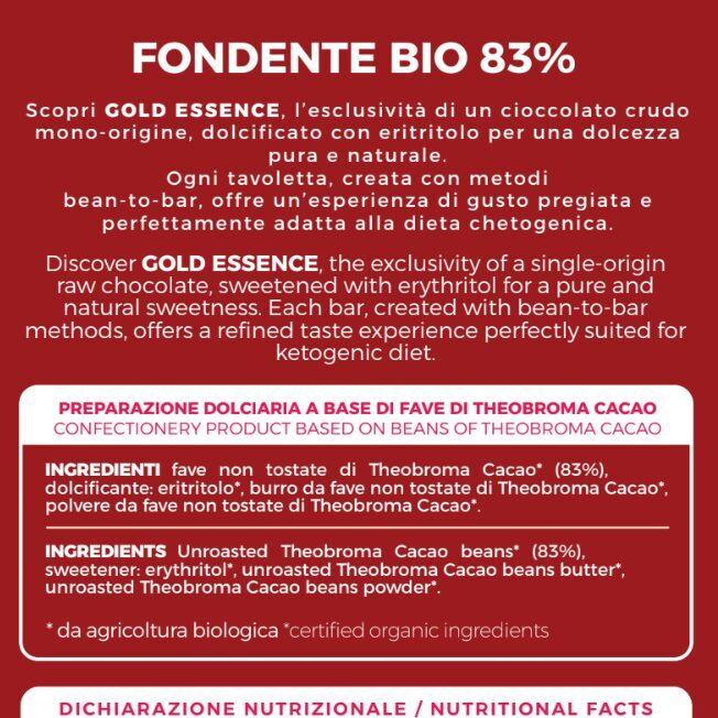 Ingredienti: Fave di cacao non tostate, eritritolo, burro di cacao.